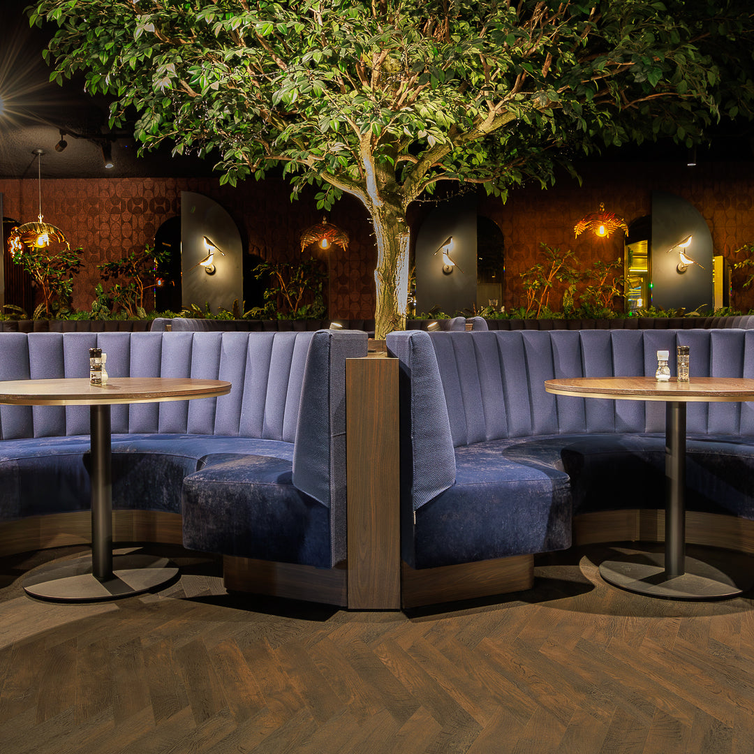 Horecabank Rond RB-04 – Ronde hoeken in zit met gelijke verticale panelen